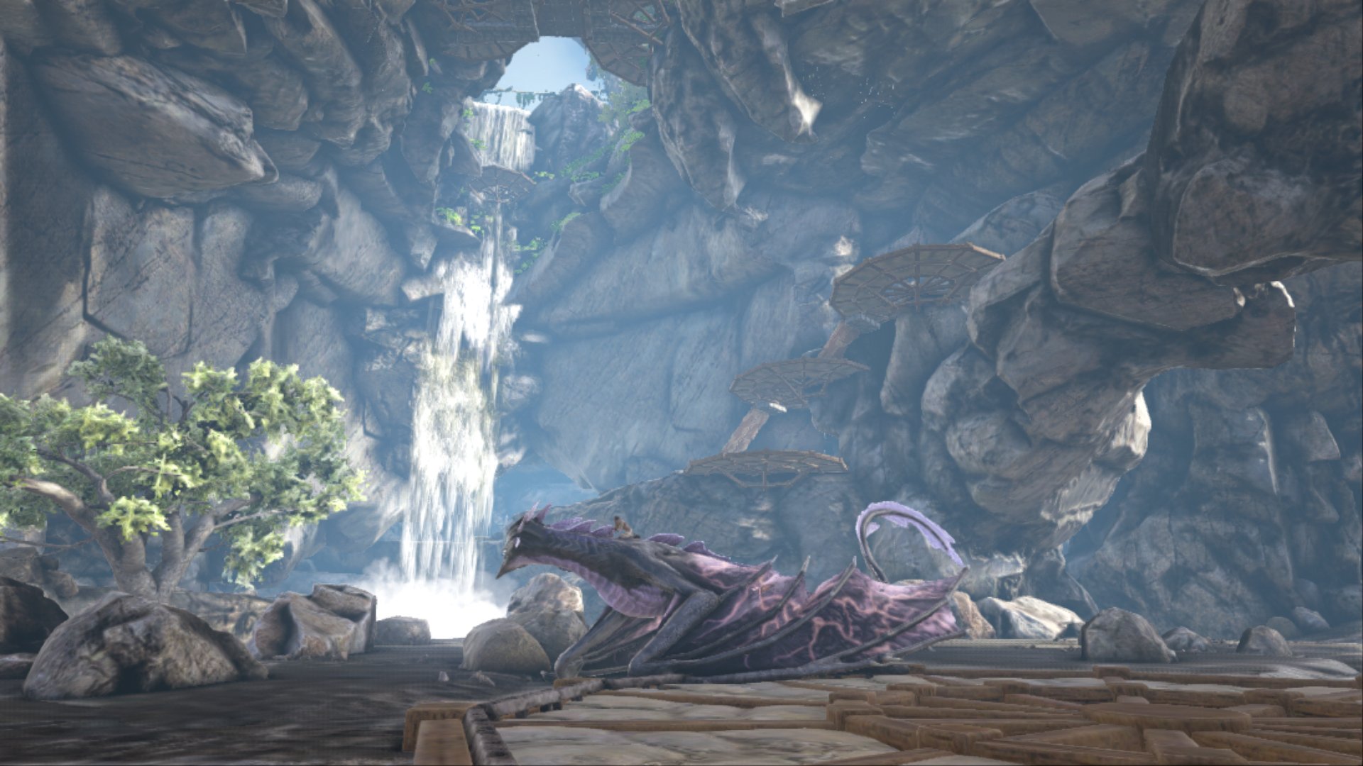 ぬこ Twitter પર Ark ラグナロク出張してるけど 北東 滝裏洞窟に隠れ家っぽい拠点作ってみた